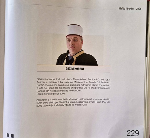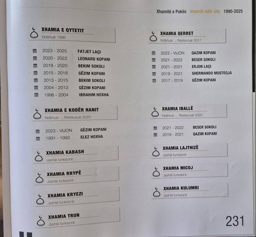 Ne botimin me te ri te Komunitetit Mysliman te Shqiperise me titull: “Zeri qe vjen nga minberi” regjistrin e emrave te 1732 klerikeve islam shqiptare, 1990-2025 mund te gjeni edhe te dhenat per Myftinin Puke faqen 227-231. Per me shume shikoni fotografit bashkangjitur.